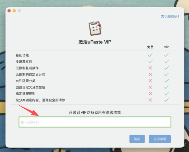 2.在输入授权码框内,复制粘贴激活码,点击立即激活。